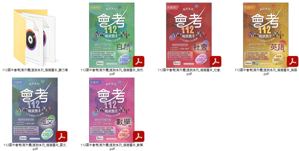 112年國中會考 [高昇鑫]段層系列 主題式歷屆試題 + 直說系列 3600歷屆試題彙整 + 直說系列 會考模擬題本 試題光碟