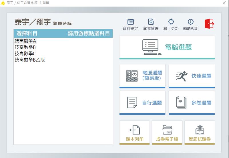 111學年下學期 技術高中命題光碟 泰宇版 數學科(A、B、C、B乙版)(108課綱) 題庫光碟